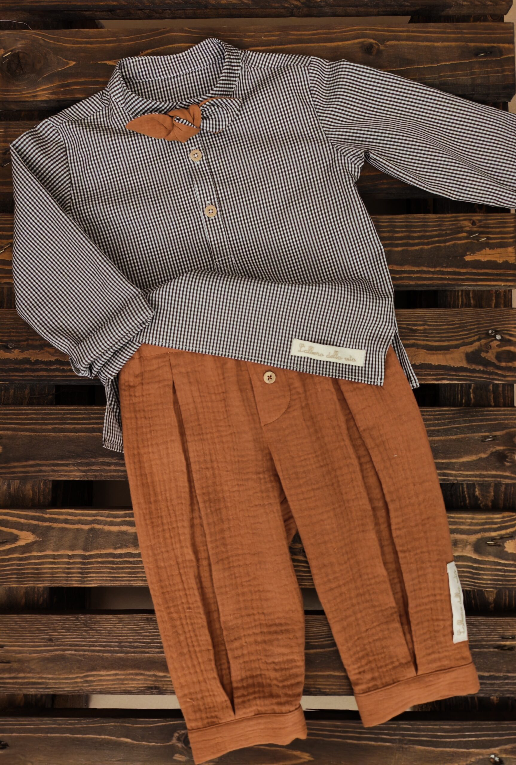 Chi l’ha detto che l’eleganza è solo per i grandi? La Camicia Kyoto porta lo stile minimalista giapponese nel guardaroba del tuo bambino. Un taglio pulito e moderno che si abbina perfettamente ai nostri pantaloni coordinati, creando un look ricercato per le occasioni speciali o per un pomeriggio di stile.
