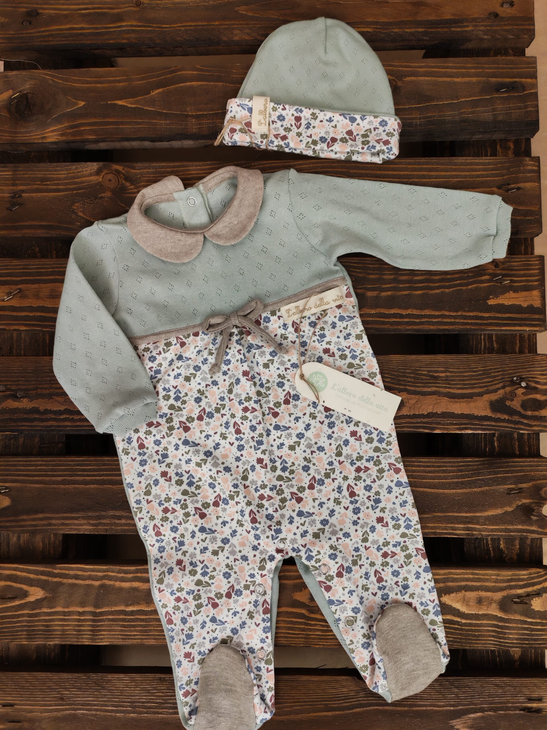 Abbiamo pensato a come rendere i momenti del cambio più semplici, mantenendo un’estetica ricercata. L’apertura inferiore dedicata al pannolino rende il cambio veloce e agevole, ideale anche per i momenti fuori casa. L’abbottonatura posteriore assicura una vestibilità ferma e confortevole, evitando bottoni sul petto che potrebbero infastidire il bambino durante il gioco o la nanna. Comodità naturale in ogni fibra.